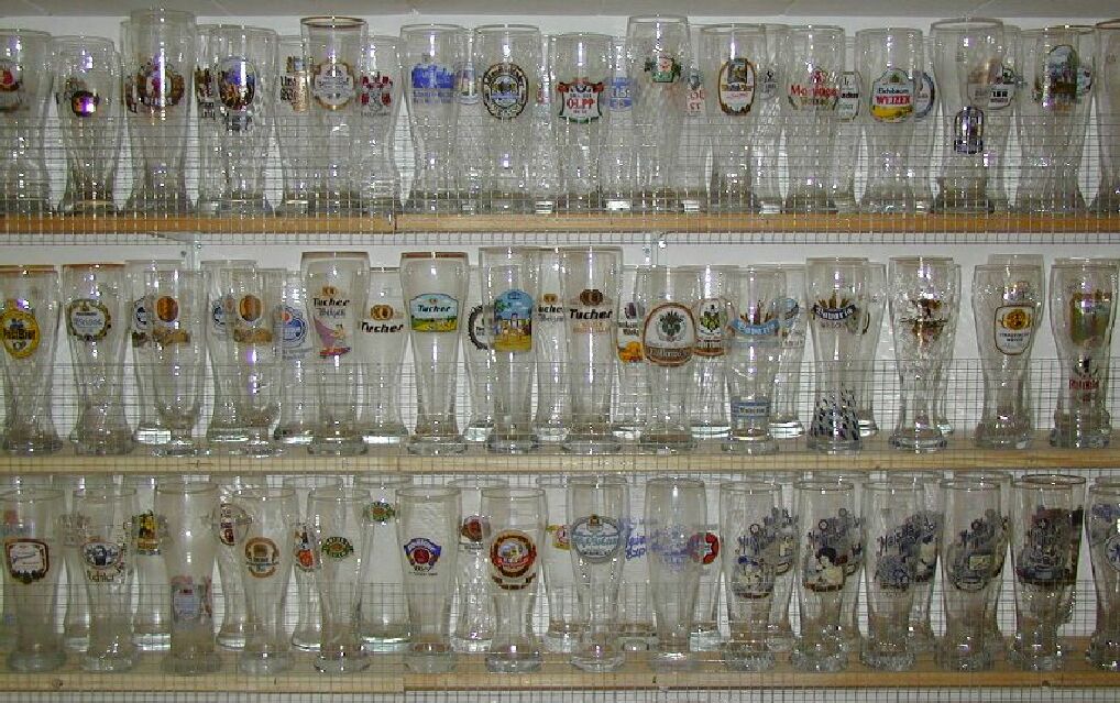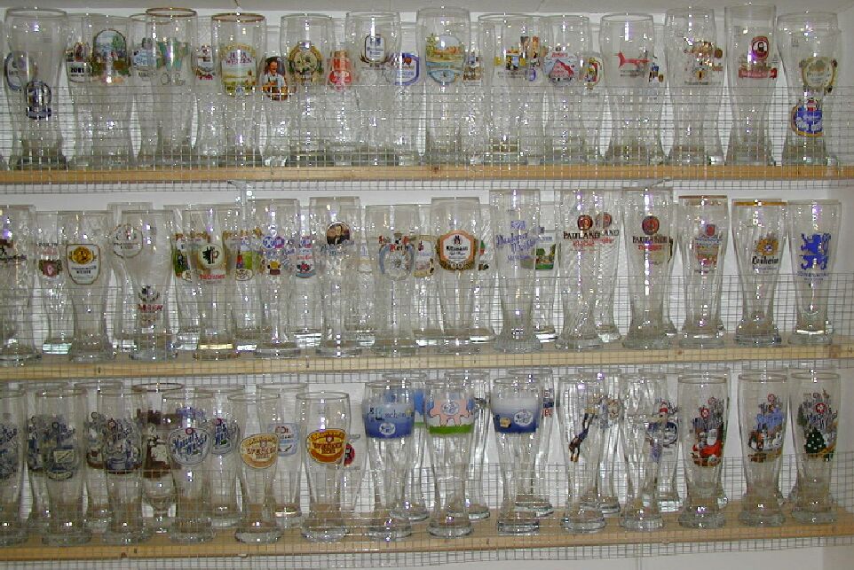 Stellvertretend für alle Weissbiergläser sehen Sie hier einen Auszug der mittlerweile mehr als 400 Gläser umfassenden Sammlung.